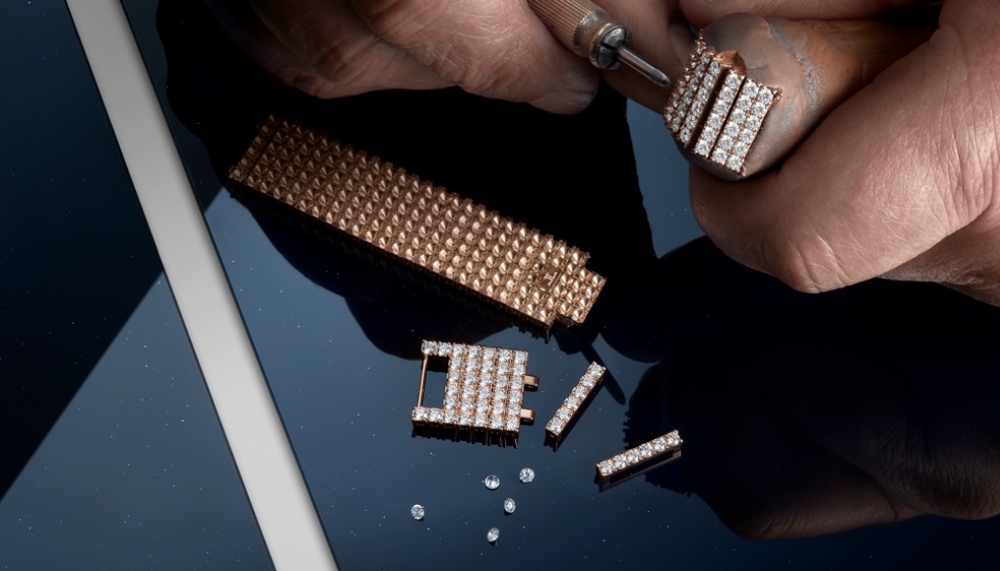 “The new Dazzling Rendez-Vous Moon is a perfect demonstration of Jaeger-LeCoultre’s master craftsmen’s know-how both in terms of watchmaking and gem-setting,” a brand representative tells Robb Report. “It takes more than six full days to fully set the watch and bracelet. For the bracelet, the gem setter needs to first work on the metal in order to get the perfect space which will welcome the diamond. After that he pushes the metal against the stone and finally polishes the whole to make it shine.”