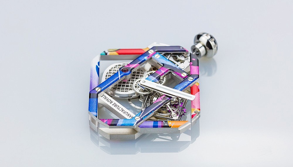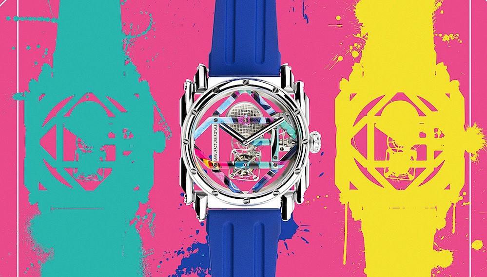 Manufacture Royale’s complex-cased masterpieces just received a colourful upgrade with the unveiling of the new ADN Street Art Collection (US$73,500/RM314,065). Not only is the piece powered by an all new one-minute flying tourbillon movement known as the MR10 (the 10th calibre the firm has designed), but the brand has also found a clever means of applying artwork to the skeletonised clockwork by adopting a process more commonly found in the automotive world — water transfer printing.