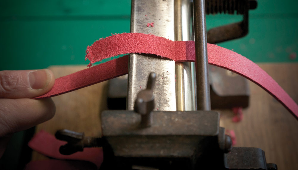 Sabel’s devotion to quality has certainly paid off. Her waiting list now numbers about 150. To order a strap, one will preferably make a trip to Sabel’s workshop, where the full range of leather and thread types can be viewed and chosen. A physical visit also gives the client the benefit of an in-depth personal consultation to discuss strap and stitch styles. Sabel also offers home and office visits at an extra charge. Straps made this way are so perfectly fitted, only a single hole for the buckle is required. For those unable to make a physical visit, there is the option of mail order. In this instance, however, the strap will come with three holes instead of the more elegant single hole.