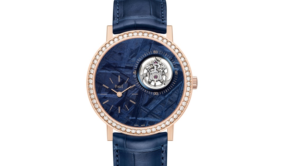 The Altiplano is very, very Piaget—stylish, understated, elegant and of course ultra-thin—and this year is even more so with the introduction of a new line of meteorite dials. Meteorite is the kind of material that looks fairly standard from far away, but up close its organic yet metallic surface is shot through with fascinating geometric patterns that make each dial unique, and a deep blue shade made possible through a galvanic colouring process.