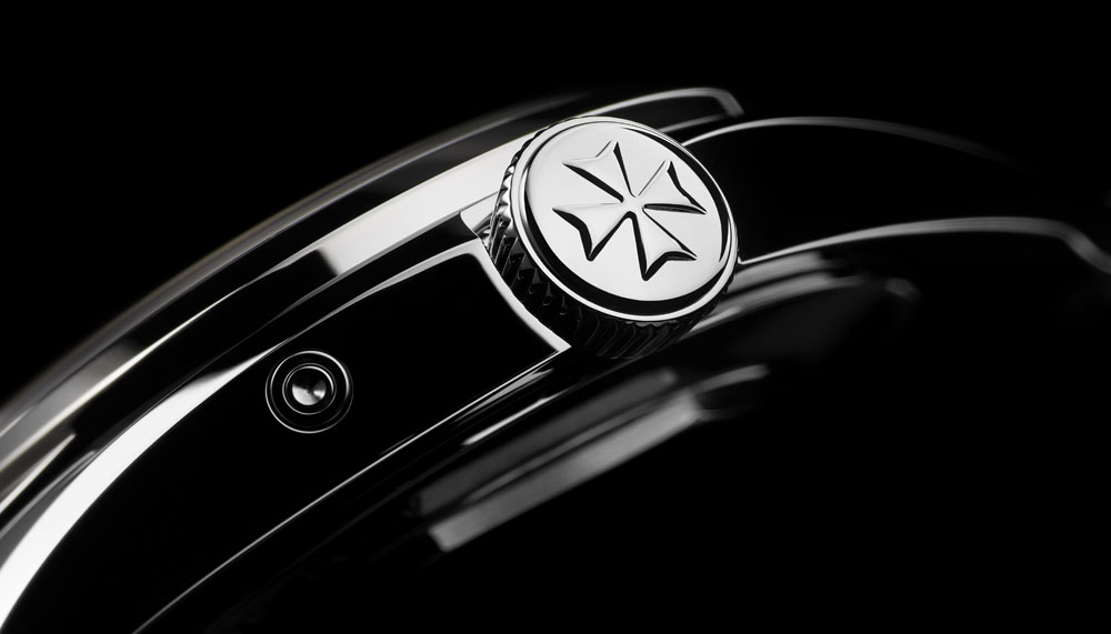 On the new Fiftysix range of timepieces, the design twist which Selmoni alludes to is expressed through branches of the Maltese cross (a component formerly found in watch movements) transposed onto the lugs. Its box-type crystal above the bezel is another distinctive hark back to the 50s, replacing the Plexiglass or mineral glass of yore with a more resistant sapphire. Similarly, its dial channels that ‘50s watchmaking iconography with sectors, alternating Arabic numerals and baton-type hour-markers. Three models – all in 40mm cases of steel or 18k 5N pink gold – offer various functions; date only, day of the week with date and power-reserve indication, as well as the complete calendar with precision moon phase.