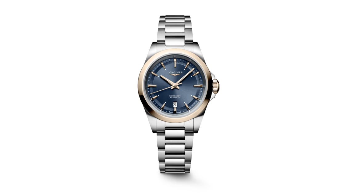 In celebration of its 71st anniversary, the Conquest introduces four distinct sizes that combine bold, timeless style with versatility. The collection kicks off with the elegant 30 mm model, available in stainless steel and gold, featuring a bezel capped with 18K rose gold and an 18K rose-gold crown.