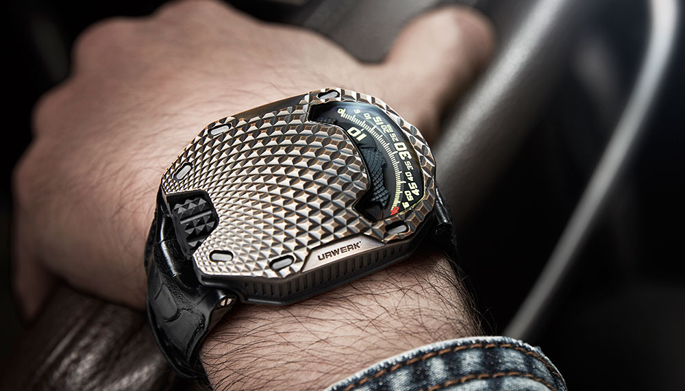 “Each model is treated as one-of-a-kind,” says Felix Baumgartner, master watchmaker and Urwerk’s co-founder. “It is decorated, beadblasted, micro-sandblasted, purified and then oxidised with a brush.”
