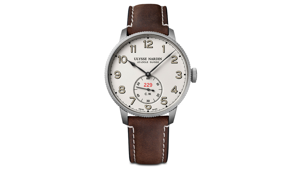 A double guarantee of COSC certification and the Ulysse Nardin certificate reflects on its standout performance, while the initials CW (for Chronometer Watch) are emblazoned on the dial. Two variations of this timepiece with different dial animations, with a choice of eggshell white or black with Arabic numerals. Its steel case features a sandblasted finish, with a limited edition run of only 300 pieces worldwide.
