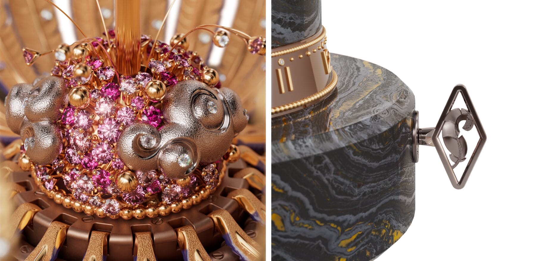 The second is something of an established niche for Van Cleef & Arpels, which created its first planetarium expression in 2014—that one was sized for the wrist. In 2022, it released its first Planétarium automaton, which was much bigger—an impressive 66.5cm in diameter and 50cm high, including its glass dome. This has to be custom blown for each one-off edition of the Planétarium, as they do not otherwise come in such an enormous size.