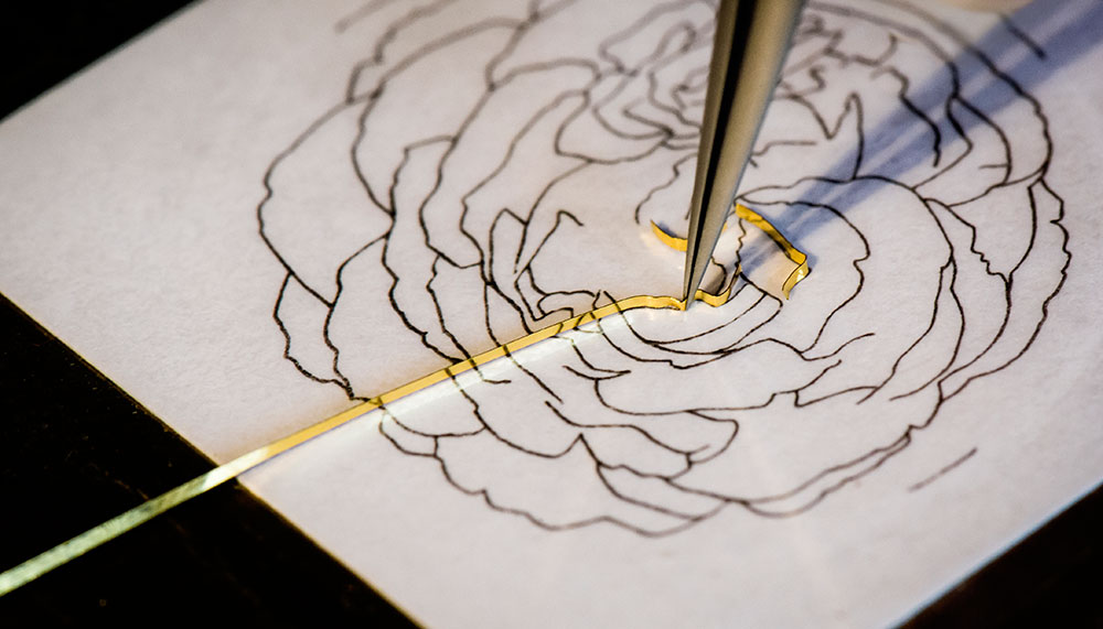 Some of her best-known works are the earliest paillonee enamel dials for Jaquet Droz. Porchet uses decades-old vintage paillons (gold leaves) which she had painstakingly collected over years, making the timepieces doubly rare. Porchet also works with Patek Philippe, producing its famous dome clocks, and had also produced the beautiful trio in Vacheron Constantin’s Metiers d’Art Florilege collection. Together with her team, she had also made special pieces for Piaget and Hermes.