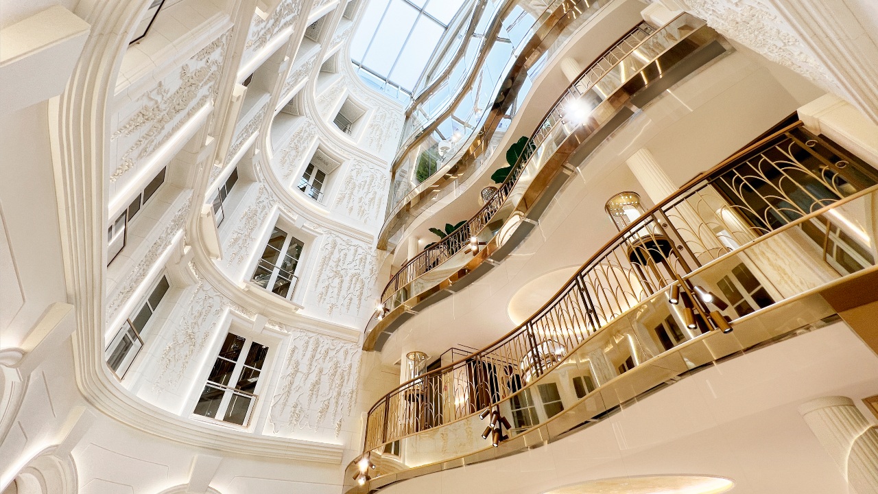 Inspired by the inner courtyard of a Parisian building, the atrium creates a verticality to the boutique and allows natural light to flow throughout all six floors.