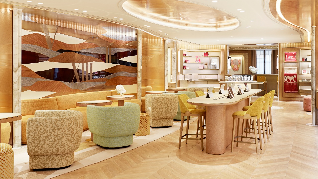 The private Santos salon on the third floor features a ceramic screen artwork by François Mascarello, and the “Quartier des Petits”, a space for children to try creative activities inspired by Cartier.
