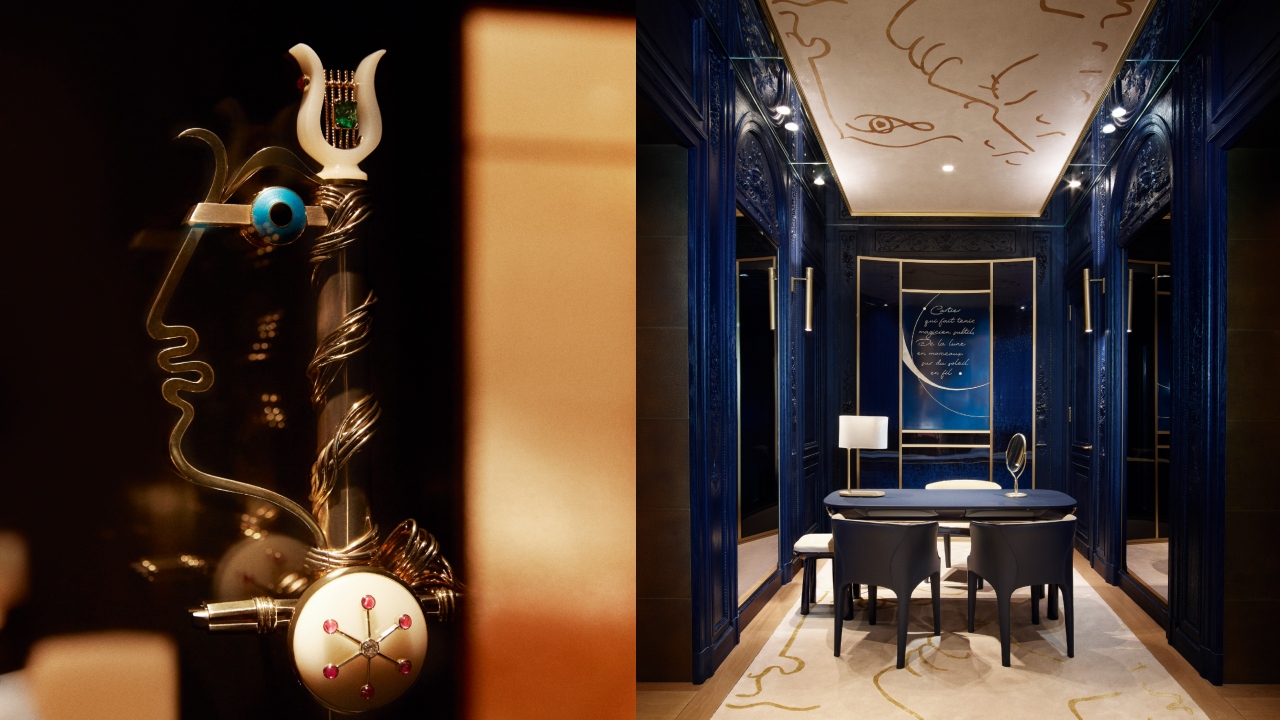 The Jean Cocteau Salon has a verse by the poet on a lacquered wooden panel, which reads: “Cartier, the subtle magician, who dangles slivers of the moon on a thread of sun.”