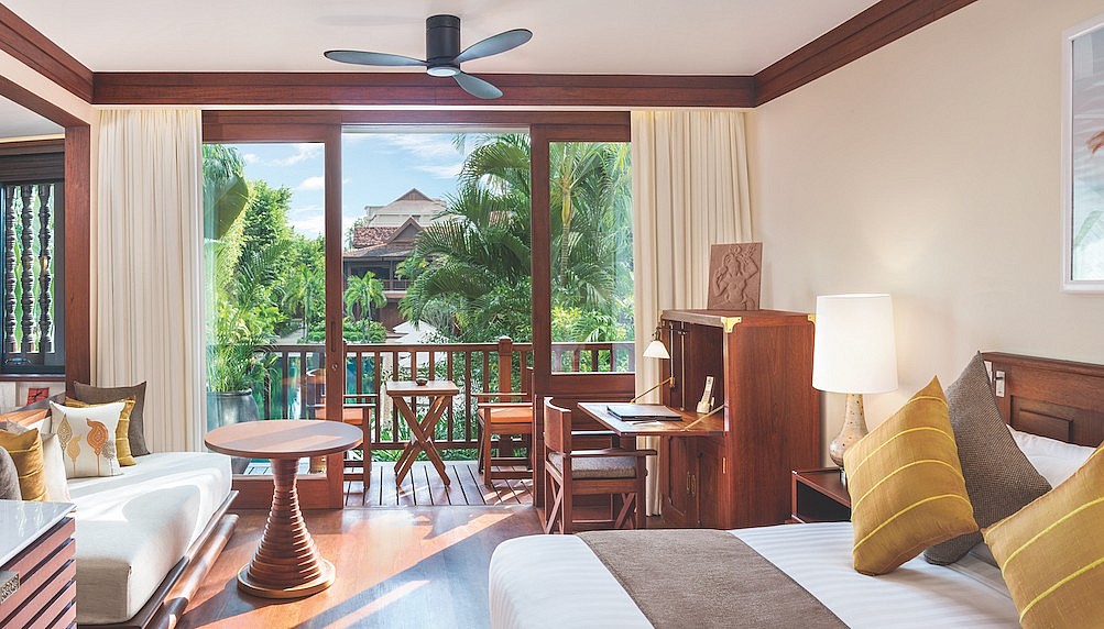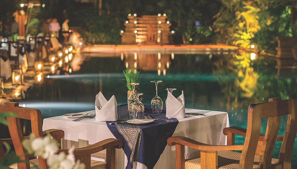 Belmond La Residence D’Angkor is a sleek yet traditional resort-style hotel featuring rich and shiny wood in the property’s interiors as well as an abundance of tropical greenery that camouflages the bustling city beyond its walls. While the hotel’s 59-suites feature an abundance of teak, punchy silk cushions and traditional Cambodian design accents, the in-room technology is international and up-to-date with widescreen LCD high definition televisions, iPod docks, and alarm clocks for early risers.