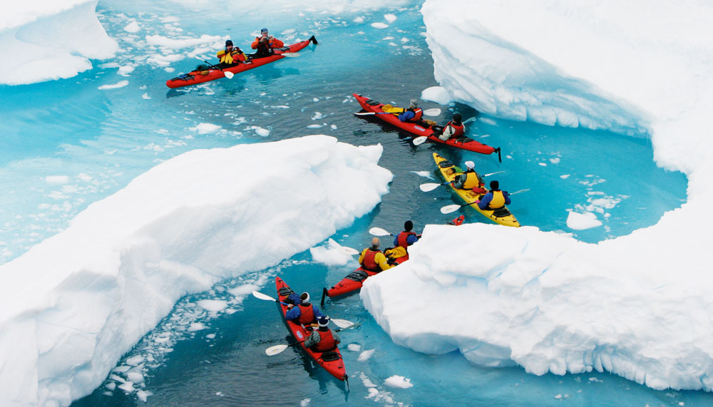 The ice camping is a much hardier experience but one that still seduces 80 percent of the ship’s contingent. Camping under the stars is one of the most popular in a raft of new activities offered by Aurora Expeditions; travellers can now also follow guides up frozen mountain passes, kayak through fields of blue-white icebergs, and even snorkel and scuba dive on selected trips. Aurora guests are encouraged to ‘rough it’ with nothing but sleeping bags between them and the awe-inspiring landscapes of an Antarctic summer night.