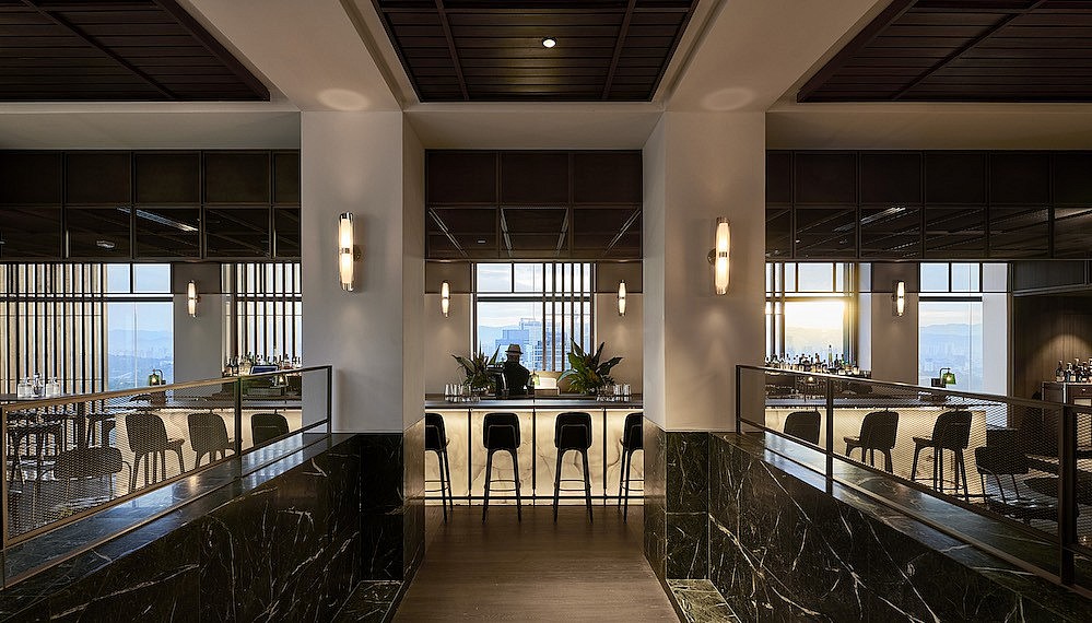 On the 41stfloor, the Pacific Standard bar speaks in minimalist design voice with a mid-20thcentury SoCal by way of Hollywood inflection. In other words: easy glamour. By doing so, it avoids being one of too many speakeasy establishments in KL’s thriving bar scene. Instead, bartender in-charge Ruben Anandha fashions tipples like the Chocolate Negroni, composed of bold gin, bitters blend, sweet vermouth, chocolate bitters; and the pineapple-rum flavoured Sunset Swizzle, pepped up with green chartreuse, basil cordial, fresh lime, pineapple, and mint.
