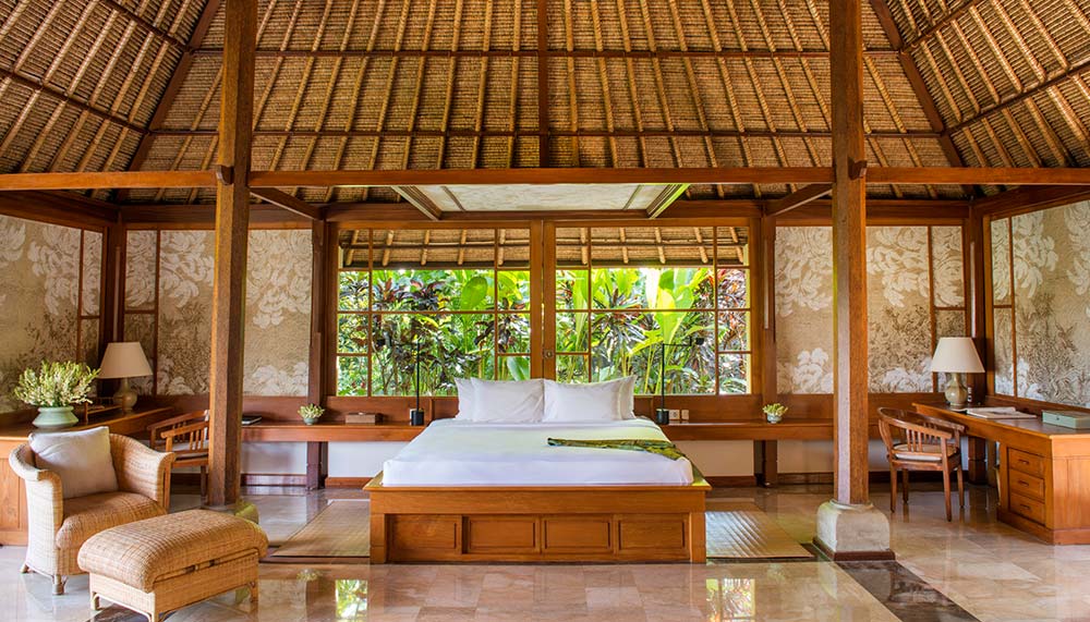 Suites are lovingly maintained in classic Aman style, constructed with bamboo, teak and coconut wood, and set in rice fields with views of the Ayung River gorge. While the building materials are rustic, the bedding is not. The latter is composed of six-cm mattress protectors, encased in smooth glossy white sheets and a battalion of super-sized pillows that always ensure a pleasant night’s rest.