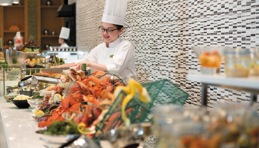 The property is justifiably proud of its sports facilities – to use the word gym would be belittling – the gargantuan Kerry Sports Manila. Covering 8,000sqm over the fifth and sixth floors, it is multi-disciplinary, with dedicated training zones for boxing/MMA, cardio, free weights, fitness (yoga, Pilates, spin), core, spa, and even has squash courts, covered tennis courts, and a 25m lap pool – one of three pools at the hotel. Its Adventure Zone is a multi-level playground for children of all ages, and includes a daredevil-style six-metre vertical drop slide. It’s the kind of thrilling test of nerve and mettle that even enlistees at the nearby Fort Bonifacio might just appreciate.