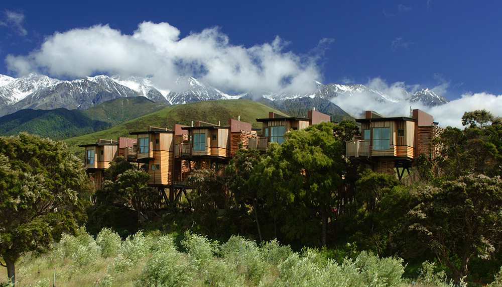 You will find your childhood dreams some 12 kilometres north of Kaikoura on the east coast of New Zealand’s South Island. Blessed with stunning views of the Kaikoura Mountains on one side and the surf beach at Mangamaunu Bay on the other, Hapuku Lodge retreat is a tree house dream come true. Suspended 10 meters about the ground in a manuka grove, the rooms are light, airy and filled with bespoke furniture made from elm, ash and New Zealand timbers. Hapuku Lodge is a great base camp to set off for the region’s other great adventures, including whale watching, giant albatross encounters, swimming with seals, , sea kayaking, and deep-sea fishing.