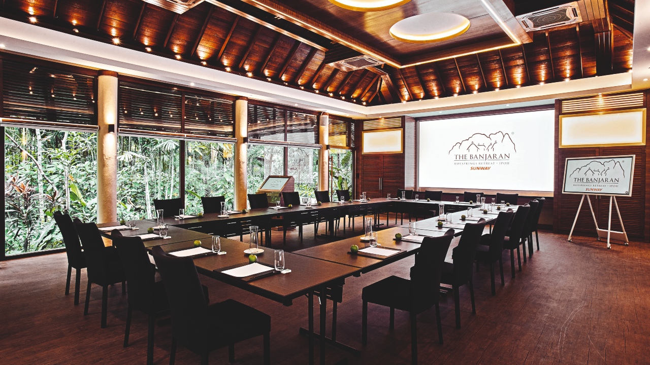 At the edge of 260 million-year-old limestone caves, The Banjaran Hotsprings Retreat combines all the coddled luxuries of a five-star resort alongside an equally stellar natural world, one where butterflies flit from flower to flower fresh with cool morning dew. The celebrated international property, a two-hour drive from Kuala Lumpur, is a versatile location – perfect for taking stock and unwinding as well as hosting corporate events with Mother Nature in full view. The latter can conveniently takes place in a series of speciality meeting spaces: Renew, Pomelo AC, and Rajah Brooke. Each meeting space has been designed to cater to a variety of meeting formats with the prerequisite advanced technological amenities such as an extra large LED screen, Samsung digital flip charts as well as the latest audio video conferencing capabilities. All spaces look out onto well-manicured verdant gardens on the periphery of pre-historic karst hills.Â