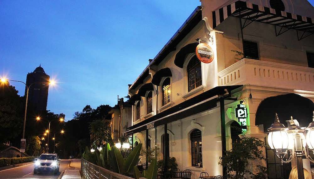 It worked. Named Old Malaya to harken back to the old days when Malaysia was Malaya, a rich, romantic colonial atmosphere unites the complex. A unique façade that opens out to the main square at an obtuse angle greets visitors, a mix of a restrained Georgian style with elements of early Art Deco in the twin pediments. The colour scheme is Tudor – predominantly white with the sole colour accents being black. This first building is home to the Pampas steakhouse, introducing visitors to the rest of the complex that stretches further back into Lorong Raja Chulan as a contemporary cuisine enclave.