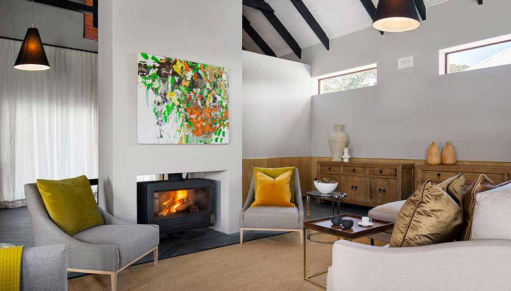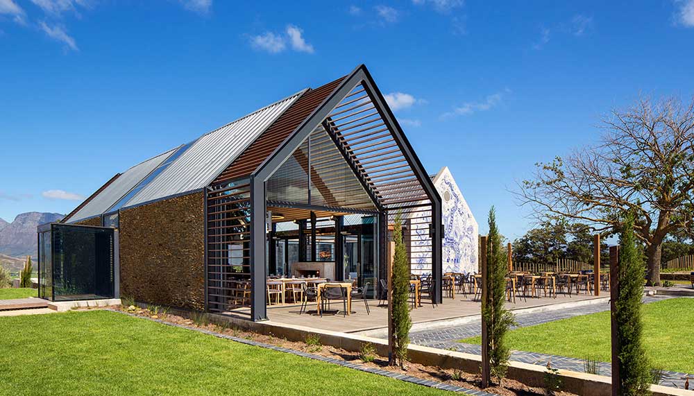 Meals naturally boast farm-to-table fresh ingredients. For light daytime choices, opt for a seat at the open-air tea garden, which serves cakes and sandwiches. For a proper meal, head to the gable-style farm shed (redesigned by Steyn), which houses the Bosjes Kombuis restaurant. Inside, one of South Africa’s most celebrated chefs, Pete Goffe-Wood, has created a menu of rustic contemporary fare amidst an industrial array of stone, concrete, wood, high-ceilings, and glass walls that immerse diners in majestic mountain views.