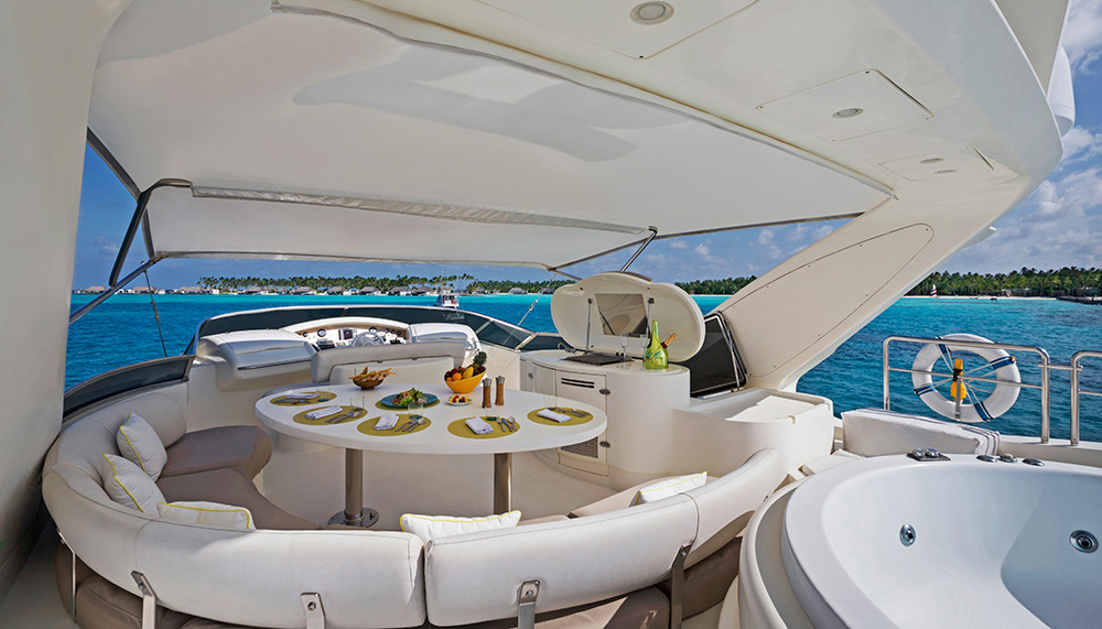 Billionaires or Bond villains requiring just a tad more privacy and exclusivity, however, will find it a short dhoni-ride away at CBR’s Owner’s Villa (price upon request), a sprawling megamansion situated on a private island. Surrounded by white-sand beaches is a main house, comprising three living rooms, a dining room, bar, private office, gym, three en-suite bedrooms and a 25m-long pool. A separate, fully self-contained guest villa is next door, while a short sandy stroll will take you to the ocean-facing outdoor dining area and a private spa, where therapists administer exclusive Guerlain treatments.