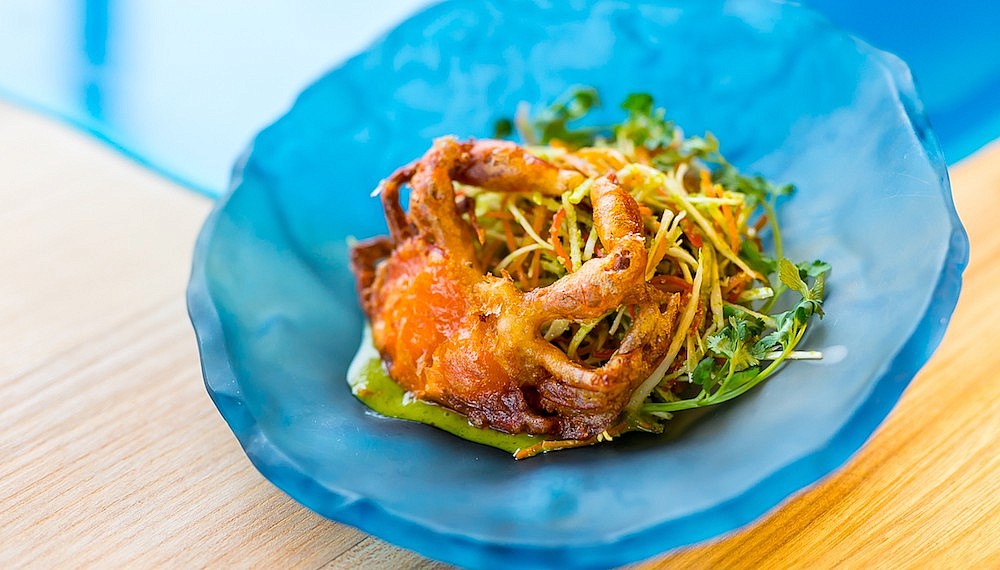 There are, reportedly, about a hundred species of crabs that live in Russian waters. Not all of them are commercially viable as catch or even as food, but of those that are, most are represented at Wine and Crab, a restaurant that eschews esoteric single-word names in favour of a title that blithely spells out its purpose. Located in a historic building on Moscow’s Nikolskaya – a prized address on a street that leads to the Red Square – the restaurant is huddled within a warm basement interior under a domed turquoise interior, spilling out into al fresco options when the summer sun rises.