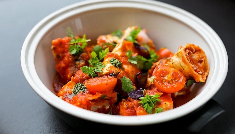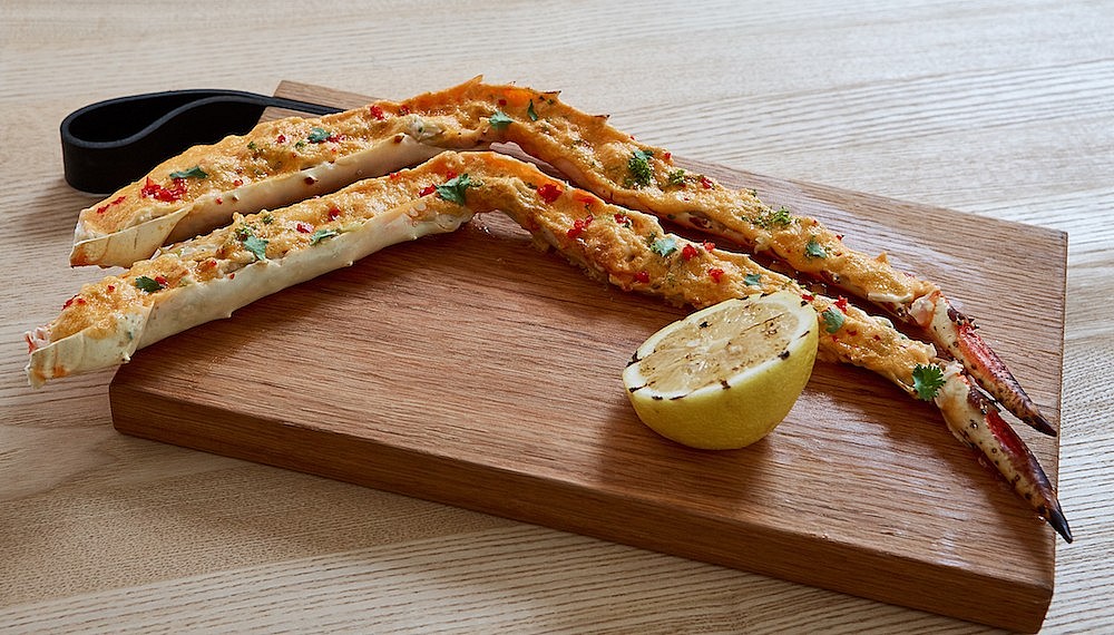 Helmed by identical twin chefs Ivan and Sergey Berezutskiy – who recently opened the lauded Twins Garden Moscow – Wine and Crab takes an all-Russian approach to its menu, just like its sister establishment. Depending on the season, between seven to nine varieties of crabs are on offer, scampering slowly in tanks in view of diners – Snow, Kamchatkan King, Murmansk King, Helmet, Spanner, Blue King, Hanasaki, Spiny and Hairy Crabs. These are presented in ways that are traditionally Russian – like spicy adjika, where Kamchatka King Crab meat is cubed into a Georgian sauce of red peppers and garlic – or delightfully modern – like the ‘wine-baba’, a play on a lobster roll that contains flaked Kamchatka King Crab and tomatoes in a bun baked by interpreting the recipe for rum baba, substituting rum for wine. The Parcel from Kamchatka – the eastern Peninsula provides some of Russia’s freshest seafood – contains portions of Snow, Blue and Blue Swimmer Crab steamed in a paper, given an Asian twist with chilli. The crustacean is interpreted in over twenty ways in the menu, and can also be served steamed or baked plain. It is Heaven for those that love the taste of the prehistoric creature, and we certainly do. For those that prefer some variety – or, God forbid, are allergic – there is other seafood available, including prawns, scallops and octopus, as well as land-based options like chicken and beef.