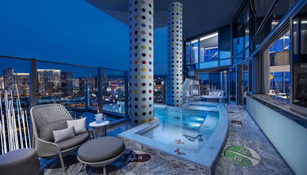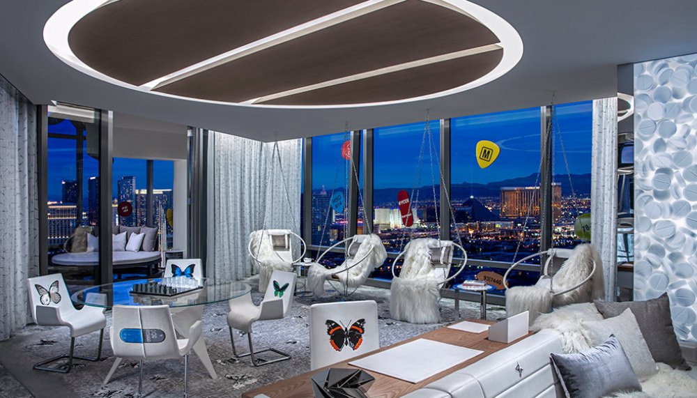 Hirst isn’t just an artist, though. He’s very much an entrepreneur—a fact that artworks like his mass-produced, yet no-less-high-priced spot paintings certainly attest to—and his partnership with the Palms has created North America’s most expensive suite. The rate, US$100,000 (or the mere sum of RM413,850) per night, with a two-night minimum, eclipses the Mark Hotel’s Grand Penthouse in New York by an impressive 25 grand per night. There is one way around that price tag, though: Casino players with a million-dollar line of credit at the resort can move in for free.