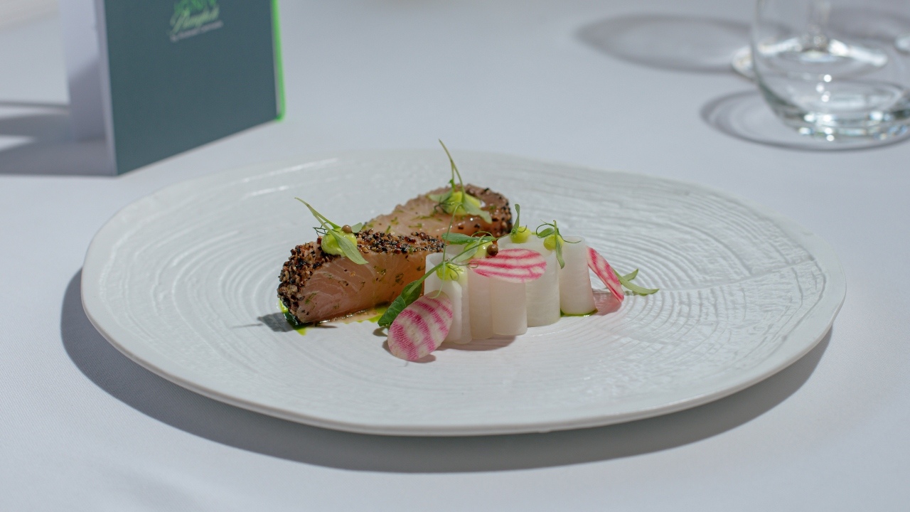 Dinner featured a special takeover by Chef Arne Riehn from the one-Michelin-starred IGNIV Bangkok at The St. Regis Bangkok. With roots in Germany, Chef Riehn presented a European menu thoughtfully adapted with local Balinese ingredients. The Beetroot Gazpacho with Waxy Egg Yolk is an IGNIV Bangkok signature, and for good reason. A touch of Chef Riehn’s heritage also shone through—most notably in the Sweetbread accompanied by Potato and Chive Oil, which proved to be a real comforting treat.