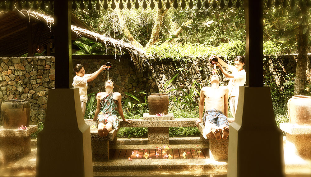 The Spa Village, to take another example, eschews any reference to Thailand or Bali, concentrating instead on lesser-known Malay practices. Focusing on the restorative properties of forest-gathered plants and herbs, a spa here begins with mandi bunga – a shower of seven ladles of water mixed with seven different flowers of seven different colours to purify the body. For her, the recommended treatment is Dandan Puteri Tujuh, a ritual for princesses; for him, Panji Alam or the Warrior’s Massage, to ease the muscles and soul of a hero.