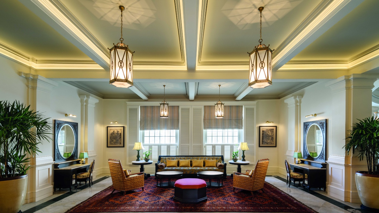 Next door, one finds the relocated Farquhar Bar which serves bar snacks, cocktails and pours from an impressive back bar, with occasional guest bartender appearances. In one of the most delightful turns of this renovation, the hotel’s iconic Grand Ballroom – the de facto venue for the island’s grandest parties and weddings with its 400-seat capacity – has been given a brilliant coat of paint which reveals all the original Art Deco touches of its original construction, with vivid splashes of colour and gilt bringing intricate belle epoque-motifs to life.