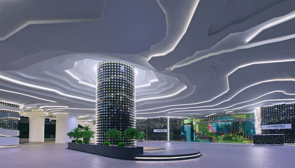 Contemporary luxury is the signature of the Le Meridien chain. As I pull-up at the porte cochere designed by Australian artist Jonathan McCabe, I later find out the ensemble of lights, contoured ceiling and al-fresco spaces come together as a permanent installation entitled Pomacanthus Imperator One.