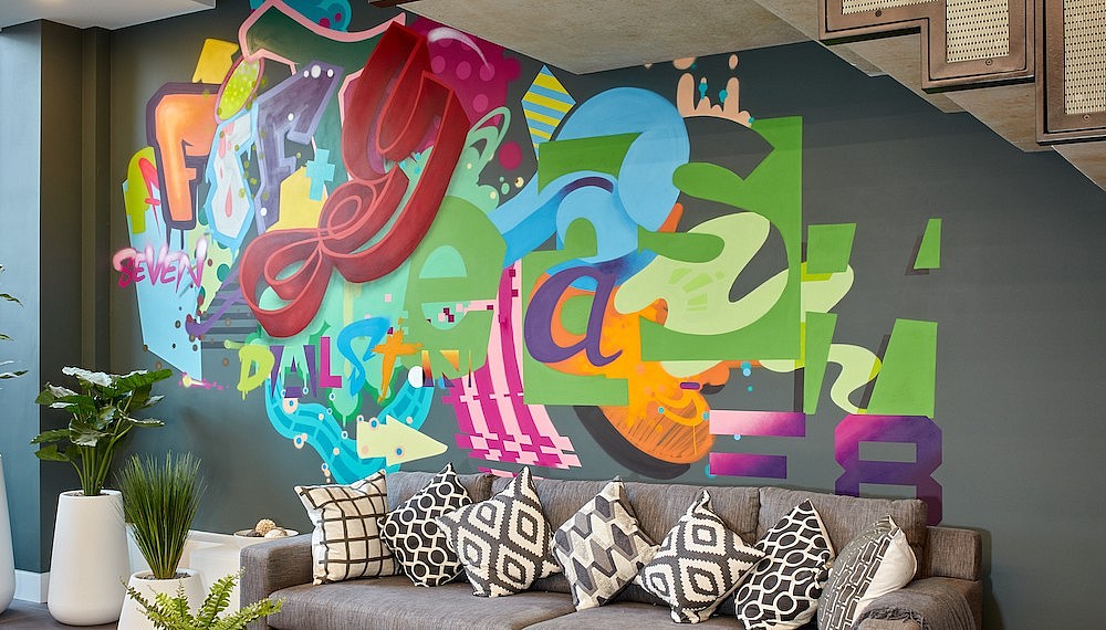 Gentrification can be a double-edged sword, but TWCL has taken pains to ensure that a little bit of authentic Dalston remains in its new building. Just as you enter, a splashy graffiti-inspired wall mural greets you – contributed by mononym local artist ‘Jason’ as ‘an enduring symbol of the area’s creative energy.’ The anterior portion of the structure contains public housing (with a separate entrance), fulfilling a responsibility to provide for the local community, which allowed TWCL to build the thoroughly luxurious posterior tower that houses the private apartments.