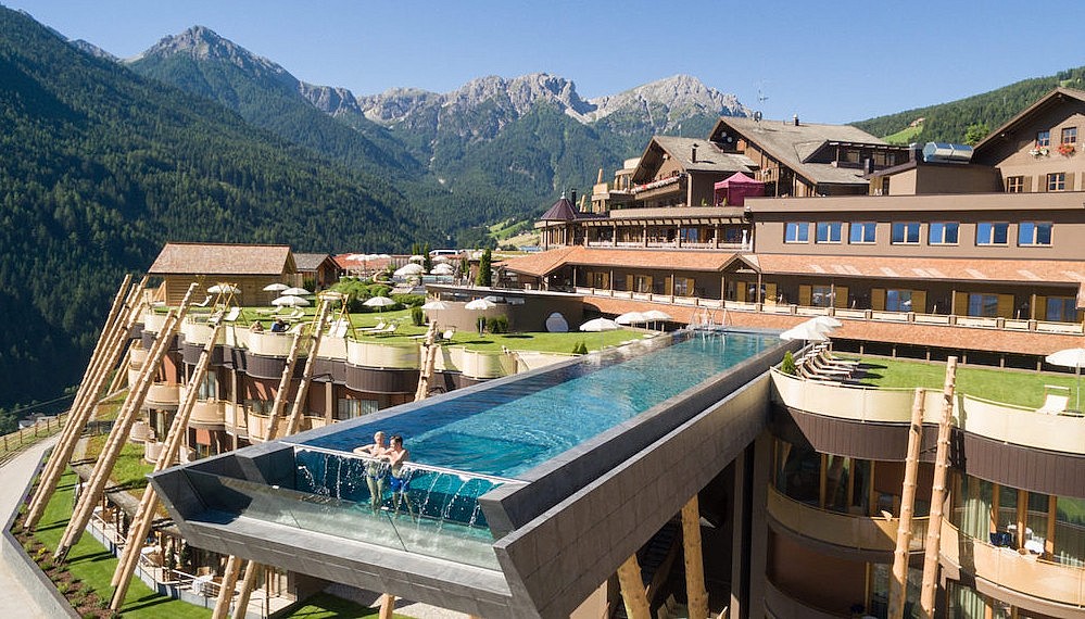 Pools have always been a selling point for hotels, leveraging unique vantage points to offer unparalleled views of, say, an urban jungle (Marina Bay Sands in Singapore), a stark desert (Amangiri in Utah) or an endless expanse of blue (almost any resort in The Maldives). Now you can add the dramatic vertices of Italy’s South Tyrolian Dolomites mountain range to that list, with a breathtaking new pool at Hotel Hubertus.