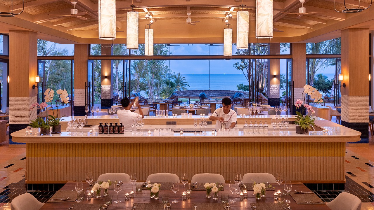 When at Pakarang—featuring a Southern Thai and international menu—don’t let your jaw drop if, sitting at the table next to yours, are off-duty Hollywood residents who have eased into Koh Yao Yai’s unpretentious way of life that seemingly hasn’t changed for the past half a century (aside from the sidecars). Order a piquant papaya salad, crisp yet crumbly on the inside spring rolls, and nuea phad prik thai dum sor (slices of rib eye beef fried with chilli, pepper and oyster sauce), as well as a Thai tea mousse crowd-pleaser for dessert. The food is as authentic as it comes, and as for the beach vibes—well, it’s the reason guests travel 11,000 km to get away from it all.