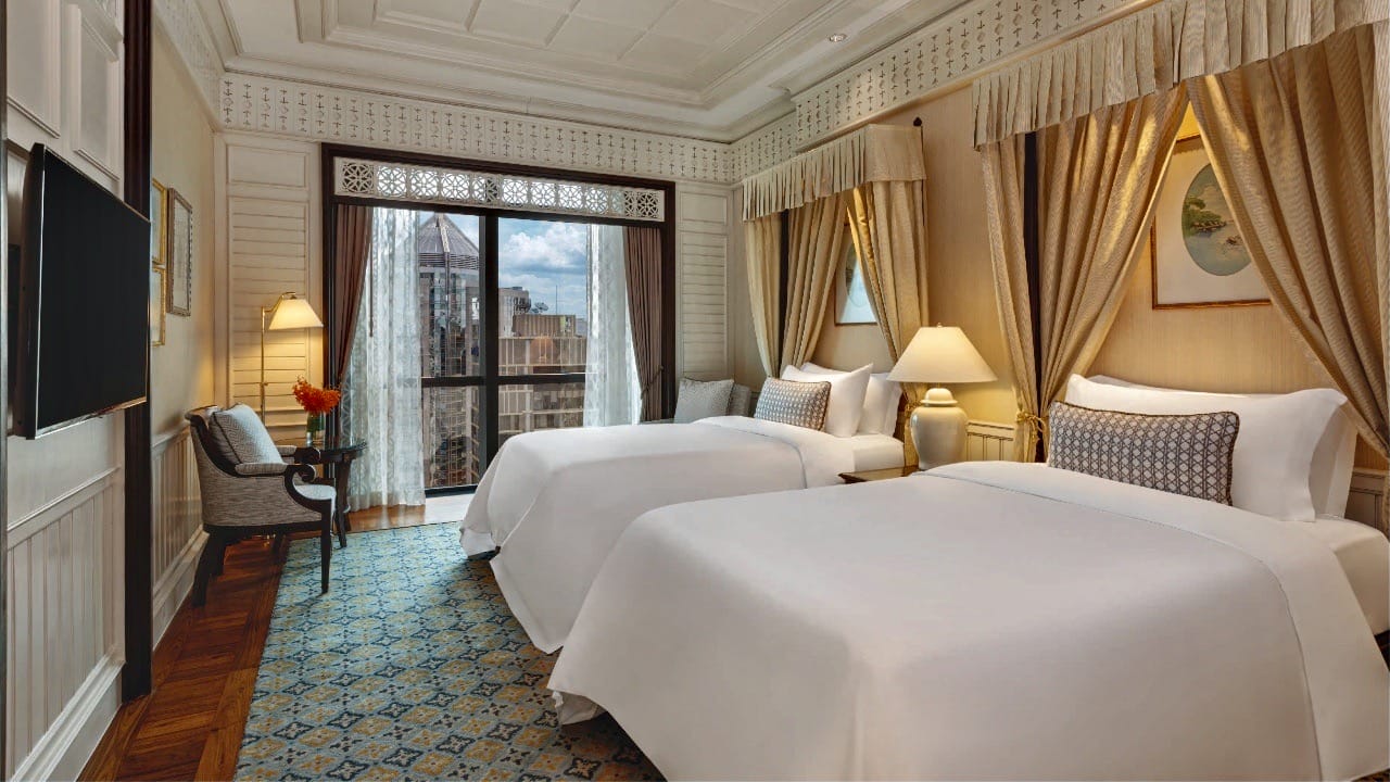 To honour its royal connections, the hotel’s interiors are adorned in European designs blended with Thai influences, a style that the princess favoured. A grand chandelier and sweeping staircase welcome you at the entrance, while the space is complemented by marble accents for a touch of classical elegance. The place is further enriched by an emblematic colour palette of jewel hues and Thai motifs subtly incorporated throughout, beautifully merging Eastern and Western elements.
