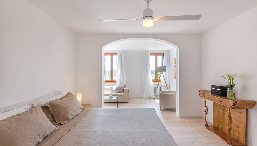 The Deutches have renovated the nine-bedroom Villa Ammiana with minimal furnishings, a collection of artworks from the Swarovski family collection, and meticulously restored historic details. There are no televisions in the guest rooms — only windows to frame the spectacular nature outside. Common areas are generous with custom-made crystal chandeliers (of course) and roaring fireplaces, while outside a swimming pool is surrounded by lush vegetation.