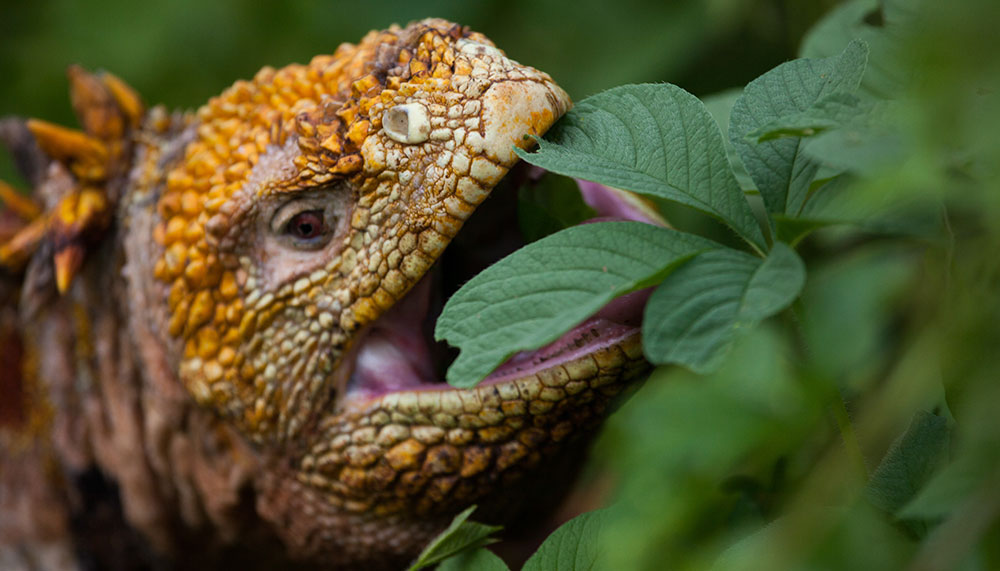 Ashore at Punta Espinoza via the ship’s sturdy military-grade zodiacs, we take turns to step onto lava the colour of espresso. It takes a little while for the eyes to adjust and for me to see that the black rock is encrusted with fat, soot-hued lizards, some the size of housecats. They lay on top of each other, absorbing the heat of the lava rock between dips in the pounding surf. These are marine iguanas, one of the most famous of Galapagos’ all-star wildlife cast and a species found nowhere else in the world. These sea-loving lizards, described by Darwin as ‘imps of darkness’, who first noticed their evolutionary divergence from iguanas on the mainland, can dive to nine meters in search of red algae, but must then return to the lava beds to warm up. Protected and complacent, these tiny Godzillas pay us no heed as we circle their collective clumps and trace the rugged coastline.