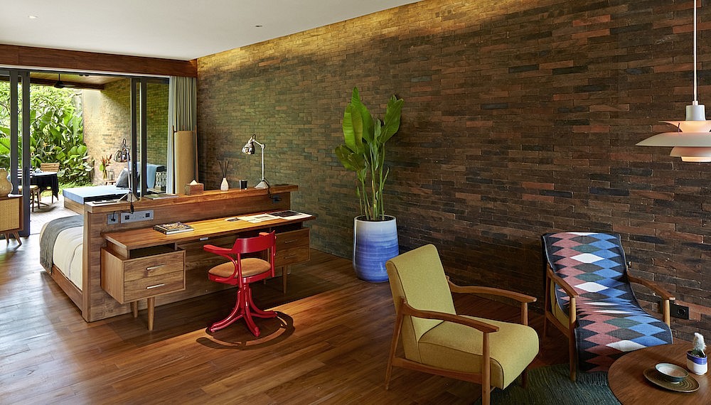 Katamama is designed by renowned Indonesian architect Andra Matin, who collaborated with the resort’s developer, PTT Family, for Potato Head beach club just steps away. Matin had a clear vision for this resort: “The idea behind Katamama was to represent Bali. It should feel Balinese, but modern at the same time. The main concept is actually the ‘modern’ architecture of 60s and 70s. It’s very geometrical.” Modernity is evoked through the clean lines of the architecture while the Balinese sensibility is reinforced in the choice of materials – a deft mix of the aforementioned bricks, teak accents, handmade tiles and bespoke terrazzo.