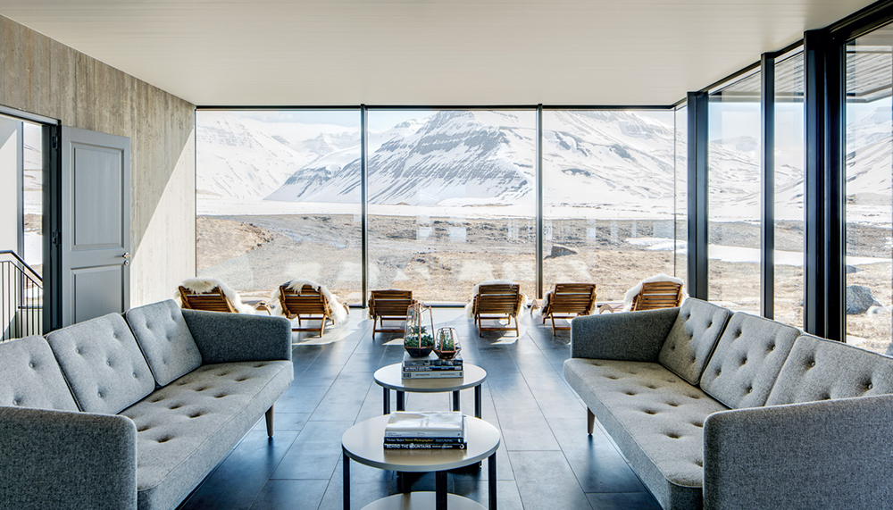 Given Deplar’s decidedly remote locale, design was no easy task. The island’s natural landscape serves as a muse, and No. 12 took a decidedly minimalist approach, sourcing driftwood from the nearby sea and stone from the local Fljotaa River. The spa lounge features chic appointments, including handmade, cosy Icelandic wool throws, and most noteworthy, inspiring alpine vistas ideal for meditation and reflection.