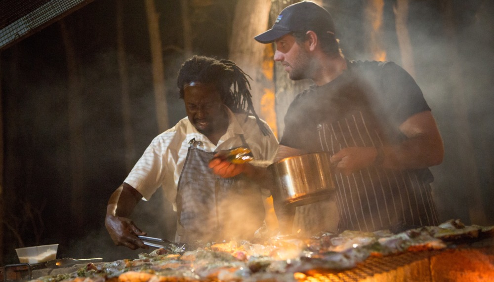 But that’s the thing about Lexus, where getting lost in one is essentially a treat in itself. A wrong turn on the way to Feast in the Forest at Leeuwin Estate’s Safari Club uncovers a view of Redgate Beach’s rugged coastline and a technicolour sunset so spectacular that it borders on the surreal. Eventually, we find a barn surrounded by jarrah and marri trees, accompanied by the cackling of kookaburras and the sight of Paul Carmichael, Executive Chef of Momofuku Seiōbo in Sydney, wreathed in smoke as he stokes a live fire. From the flames come the heady, extroverted Barbadian flavours that recently netted him the Australian equivalent of three Michelin stars: jerk pork jowl drizzled with abalone caramel, fish heads bathed in hot sauce, and caulini laced with piquant dog sauce.