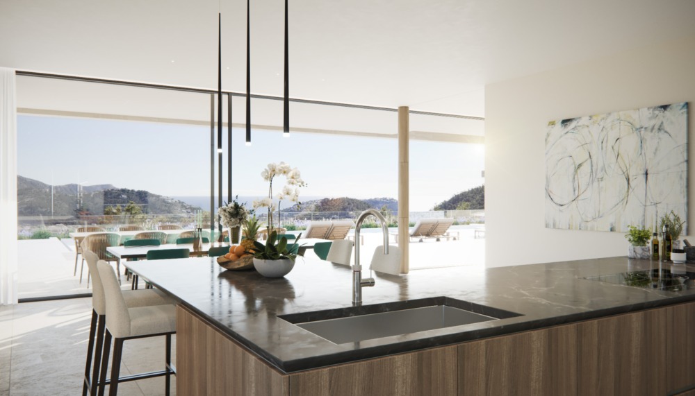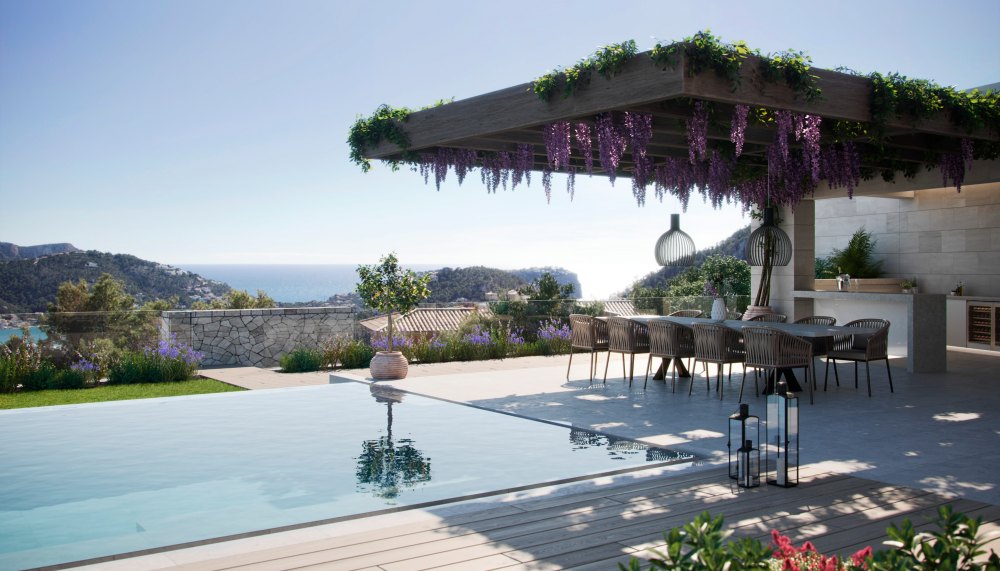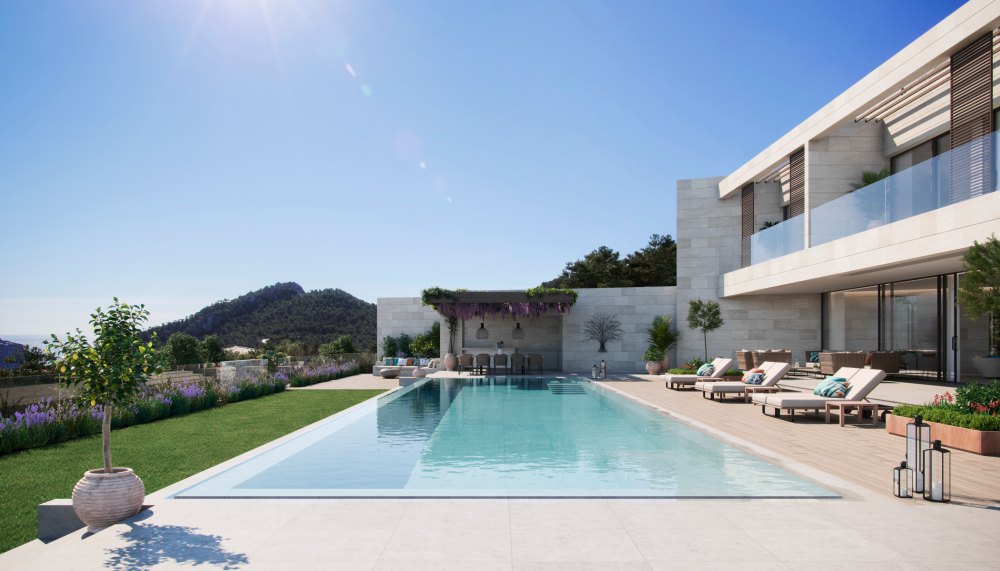 Infinity, which boasts eight bedrooms and 1,583sqm of living space, melds organic curves with elements of traditional Mallorcan design, all courtesy of prestigious Mallorcan architects Luis and Antonio García-Ruíz. Beside an abundance of secluded space and plenty of natural light in every room, the panoramic views of the Mediterranean Sea visible from Infinity’s large terraces, swimming pool and garden make this property a particularly covetable one.