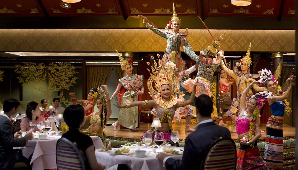 If it’s more old-world charm you’re after, there’s Sala Rim Naam, on the opposite bank of the Chao Phraya River, accessible via a short complimentary ferry ride. Serving traditional Thai food, your dinner also comes with classical Thai music and dance performances. You’ll be able to order Thai-inspired cocktails (like a Thaijito, a mojito variant featuring Mekhong rum and lemongrass) or an Italian Pinot Grigio, its silky astringence providing a nice counterpoint to the spicy food.