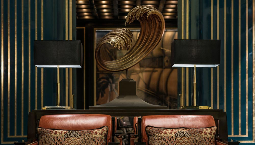Contemporary art pieces decorate the communal areas throughout, enveloping guests into the Javanese culture. Guests are brought through the era of Dutch colonialism, then to 1945, where Indonesia is recognised as an independent nation, with Jakarta as its capital. The country slowly makes its mark on the world, with gamelan music, and Ikar and Batik patterns etched into the pillars of the hotel. Champalimaud also cleverly reflected the country’s deeply-seeded emphasis on respecting the individual qualities of both genders through his and her salons, and Arisan rooms — social gatherings for the elite — denoted by the use of different mahkotas (crowns) and fabric and wooden interior panels.