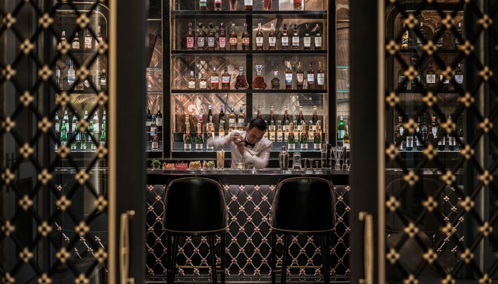 The journey takes a sharp and dark turn at The Library, a lounge plastered with browned and crumpled maps, compass roses and barometers, and adorned with telescopes, sailboat miniatures. Fitted with burnt orange and dark teal furniture, it foretells an arduous journey through the seas. From there, guests can either navigate their way to Nautilus bar where the storm has passed and night has fallen, or La Patisserie, a dainty confectionary set within a cream-and-turquoise room that promises brighter and calmer days ahead.