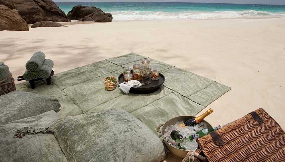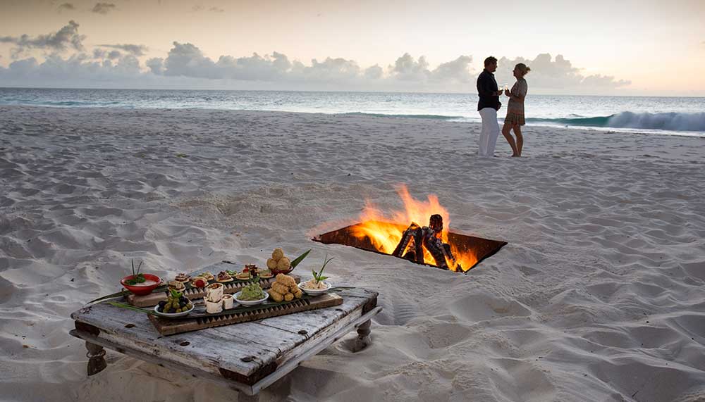 We loved the any-menu-any-venue-any time concept and felt thoroughly spoilt! We had a French toast breakfast on the sun dappled honeymoon beach, sushi lunch by the infinity pool, cocktails on a sheer rock face and a creole dinner skirted by tiki torches on West Beach. Nadine and Fred helped create hopelessly romantic settings that we will cherish forever! At each site a discrete rope closed the entrance announcing privacy, which in North Island is paramount.