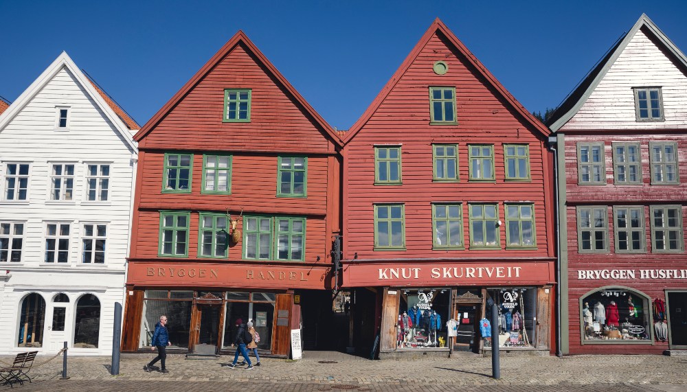 About 54 kilometres north of Bekkjarvik lies the city of Bergen, once a famous fishing and trading centre of the Hanseatic League. Today, the city retains its fishing heritage in the form of Bergen Fish Market, with a modern indoor section called Mathallen that houses permanent shops and restaurants. At Mathellen, traditional dishes such as fish soup, a creamy broth made of salmon and cod, and smoked trout with sour cream are popular choices. Seafood platters are also crowd favourites, containing freshly caught langoustines, scallops, oysters, mussels and shrimp.