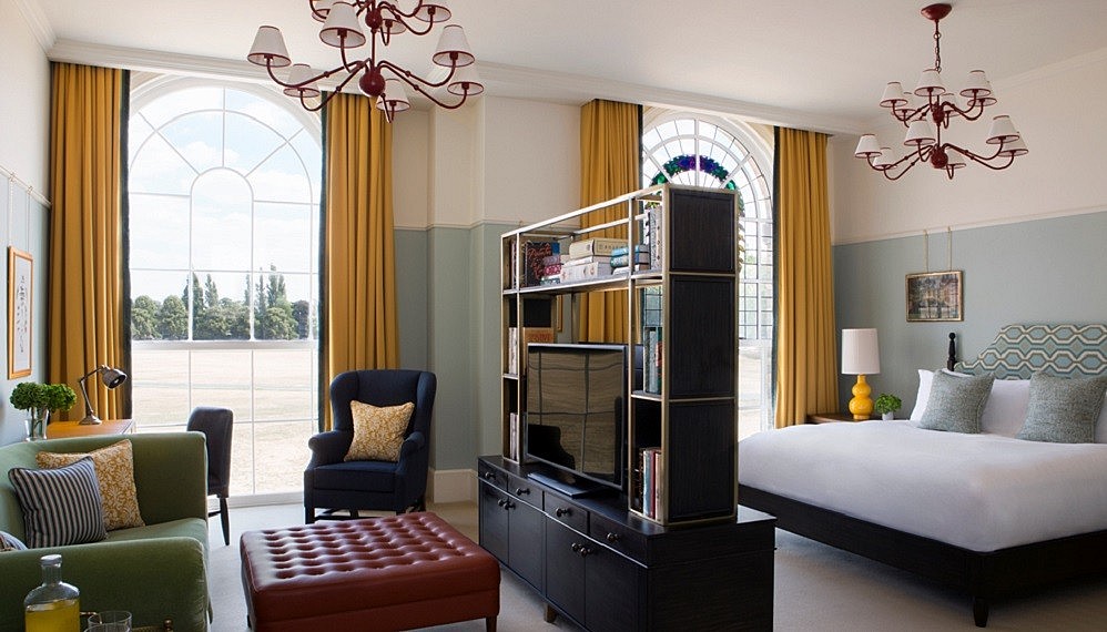 How do you choreograph a Cambridge-worthy master class in redesign and restoration? Call in John Simpson, for starters. One of Britain’s most celebrated classicist star-architects, famous for his work on both Buckingham and Kensington Palaces, he’s a man who knows his Doric from his Corinthian columns. Simpson tore down the hotel’s misguided ’60s additions, an expanse of brutalist blight that included a parking structure and a modern wing mummified in concrete. In their place, he erected an elegant new annex and a neoclassical portico supported by Samson-sized pillars. The result is a throwback silhouette that echoes the University of Cambridge itself — an ethereal sprawl of college turrets, spires, archways, and fountains.