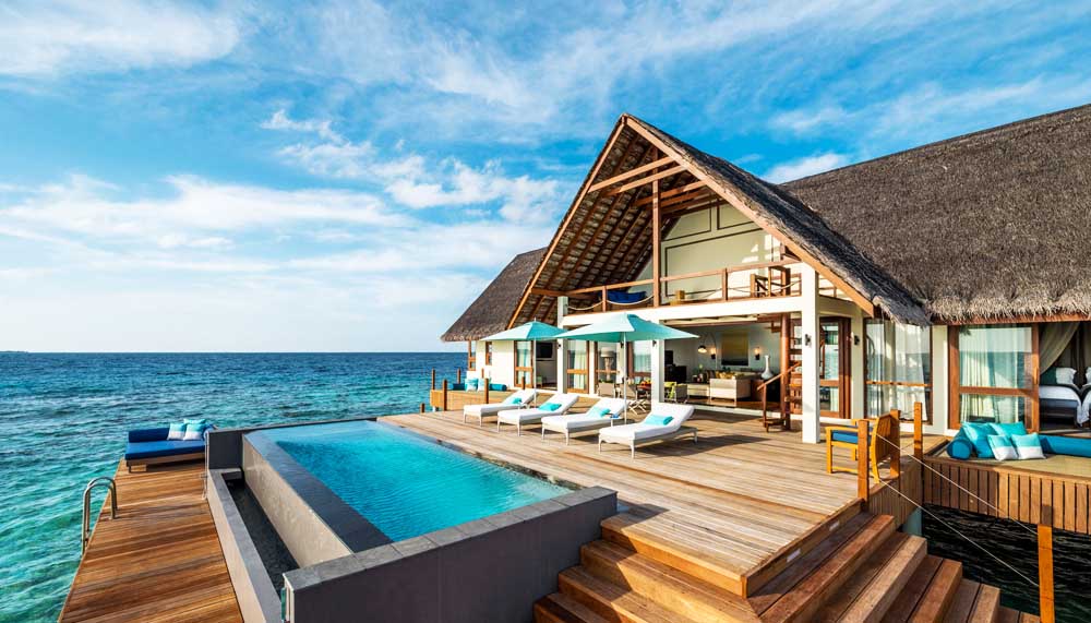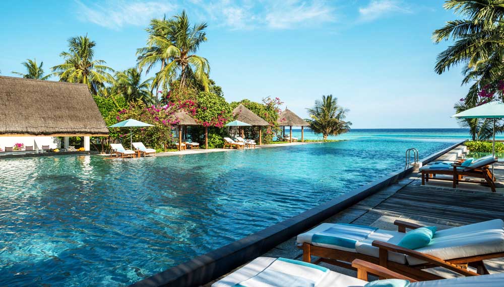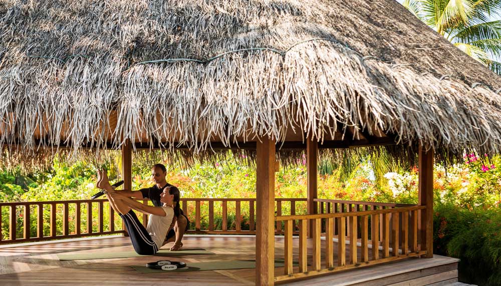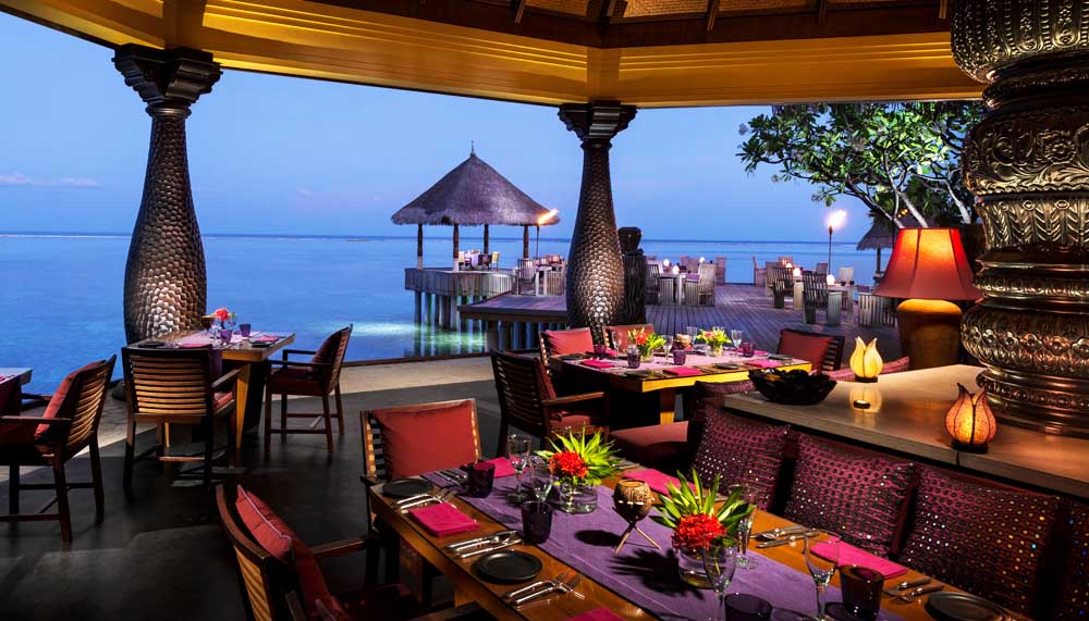 The flat waters are not just perfect for diving and snorkelling, but also watersports. Paddleboarding, parasailing, jet skiing, dolphin watching, the vertical thrills of water jet-packing and even surfing (Kuda Huraa hosts the annual Four Seasons Maldives Surfing Champions Trophy). To unwind, there is paddleboard yoga (less precarious than it sounds) and the signature Healing Hands treatment at the Island Spa. For sustenance, there is the tranquil Reef Club, the fresh Kandu Grill and superlative Indian cuisine at Baraabaru.