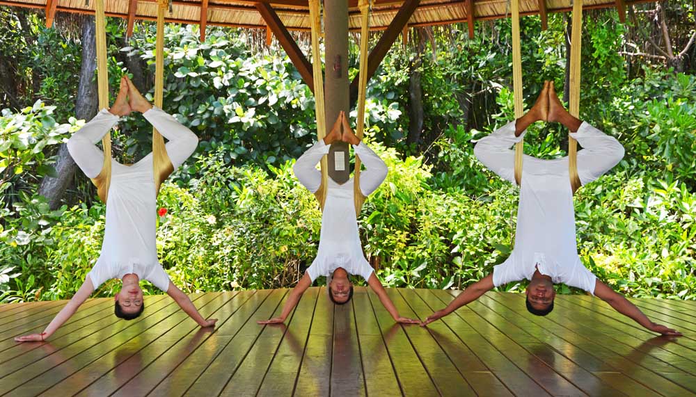 Leaving the villa’s private pleasures is tough, but walking (or cycling) through the rustling palm trees (and discovering a herb garden in the middle of the jungle!) will take you to the Spa and Ayurvedic Retreat, which specialises in wellness treatments. There is also anti-gravity yoga, a wonderful blend of Cirque du Soleil acrobatics and yoga that caters to even the most un-limber (ie. me).