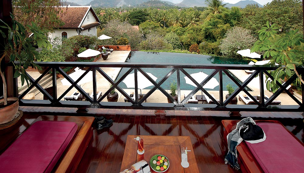 Belmond La Residence Phou Vao, a five-star resort hotel, occupies the royal summer palace of an ancient Lao dynasty. Each room is extraordinarily large and beautifully decorated in teak, with great views of gardens and mountains. The inviting 13m infinity pool overlooks the old town and mist-shrouded mountains, and guests can order drinks from Doc Champa Bar.