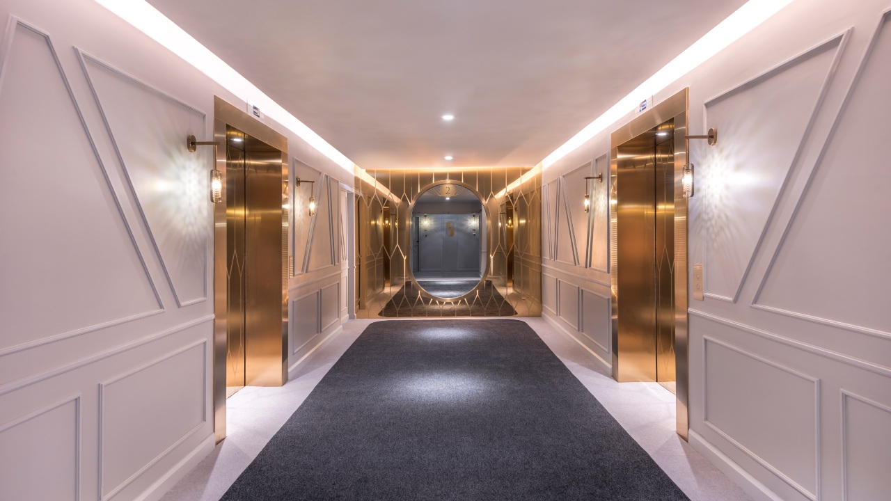 Notions of magic and illusions were introduced not only to overcome certain problematic aspects of the site, the designer’s goal was to create delightful spaces and memorable guest experiences. As such, elements of visual trickery (e.g. appearing and disappearing, or levitation) is subtly introduced throughout the 162-room hotel. This range from the transformation of familiar heritage floor patterns to captivate the eye along a long potentially monotonous corridor to imaginative furniture design like a custom made reception desk that seems to magically balance on balls, and hidden doors in guestrooms that open to reveal toilets and pantries. Indeed the mundane often takes a mysterious glamourous quality in said guestrooms. The shower vitrine for instance takes aesthetic cues from Houdini’s escape box and is realised in champagne bronze-tinted metal and glass while beds are built and lit in such a way that they appear to miraculously levitate.